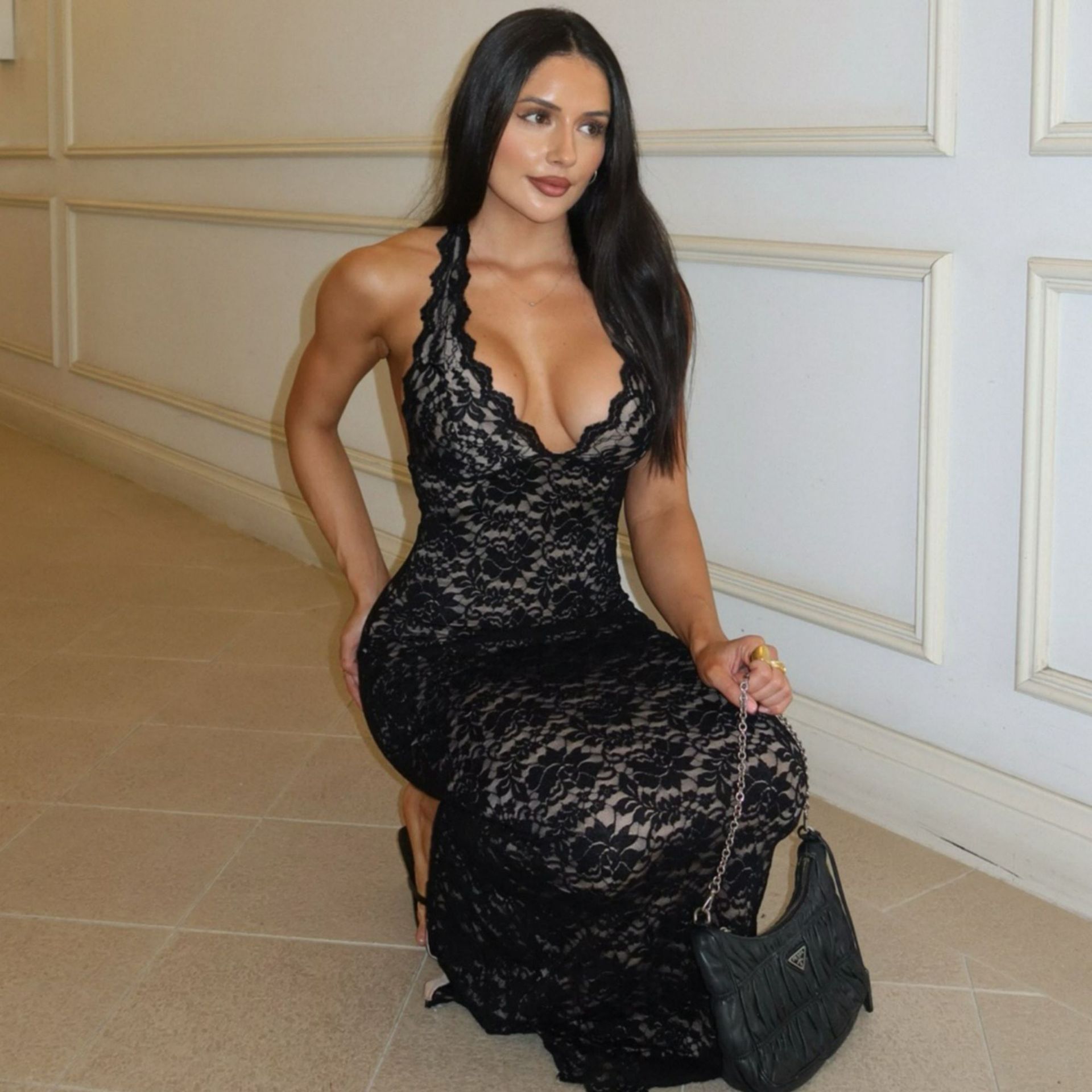Daring yet refined, the Luna Lace dress is designed to captivate. With its sultry halter neckline, delicate lace overlay, and sleek, body-skimming fit, this gown brings instant drama to any evening. Whether for a summer night out, a rooftop party, or a romantic dinner, it’s the dress that makes an unforgettable entrance.